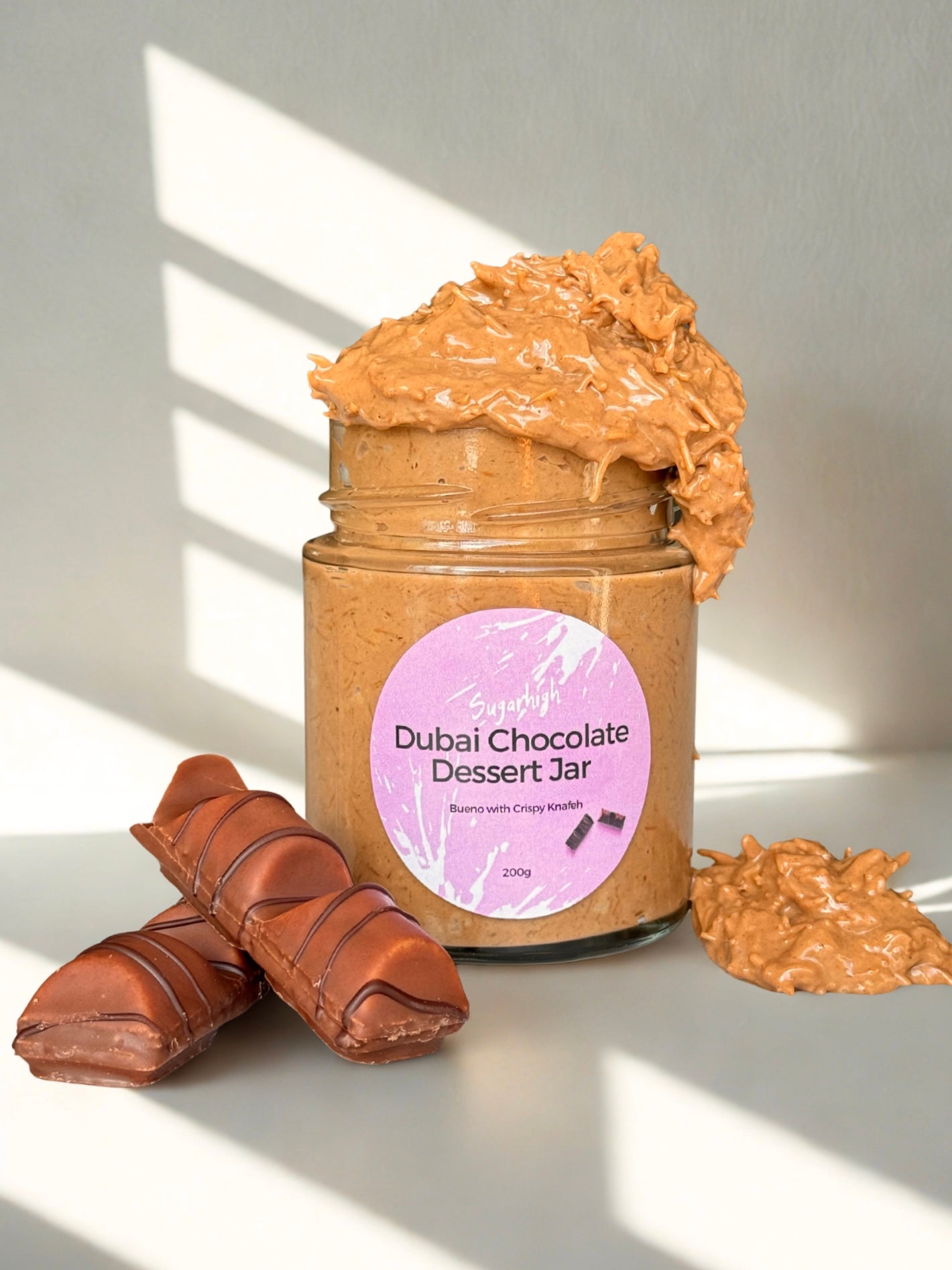 Our most delicious Dubai Chocolate Dessert bar fillings are now available in a jar! Whether you want to add them to cakes, desserts, or simply indulge straight from the jar with a spoon, these dessert jars are addicting 😍
